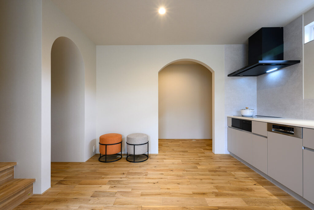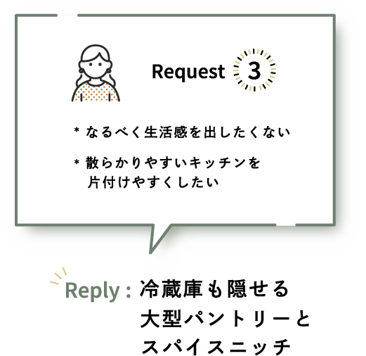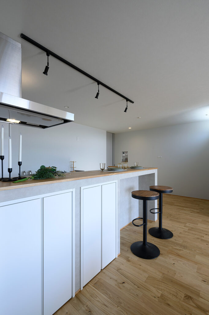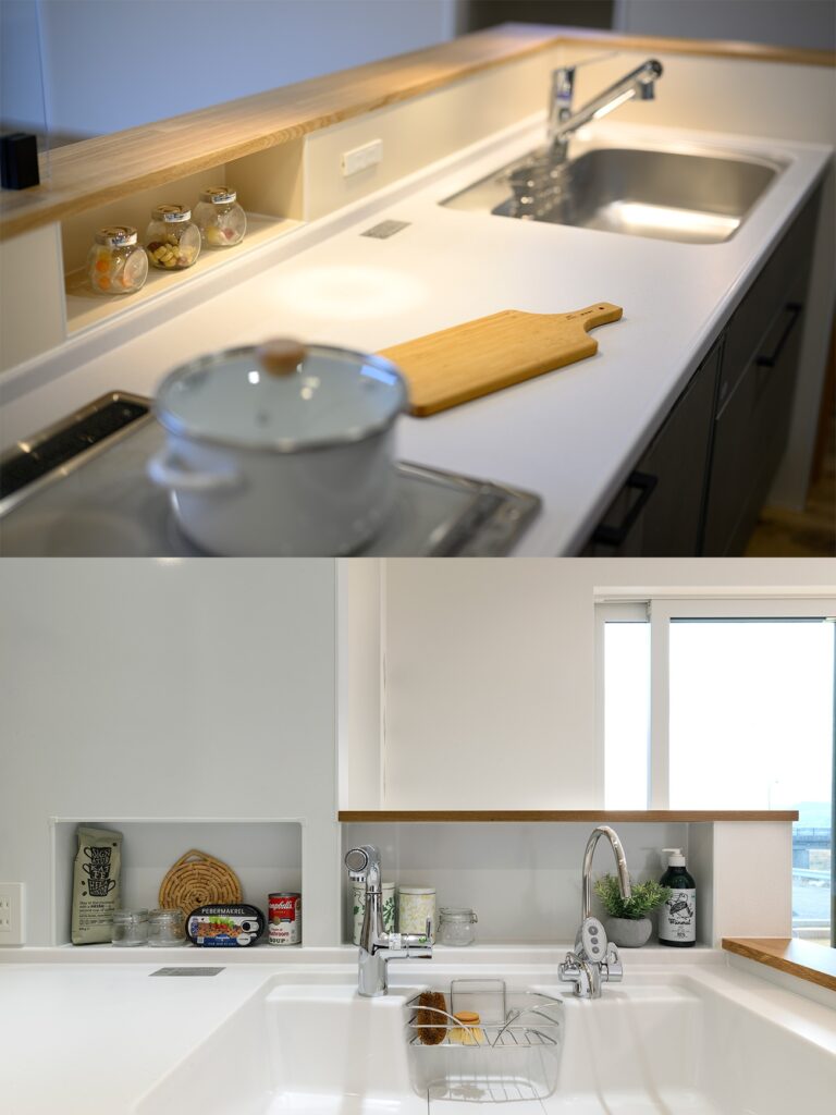 キッチンに腰壁をつけると手元が隠れるためより散らかりが目立ちません