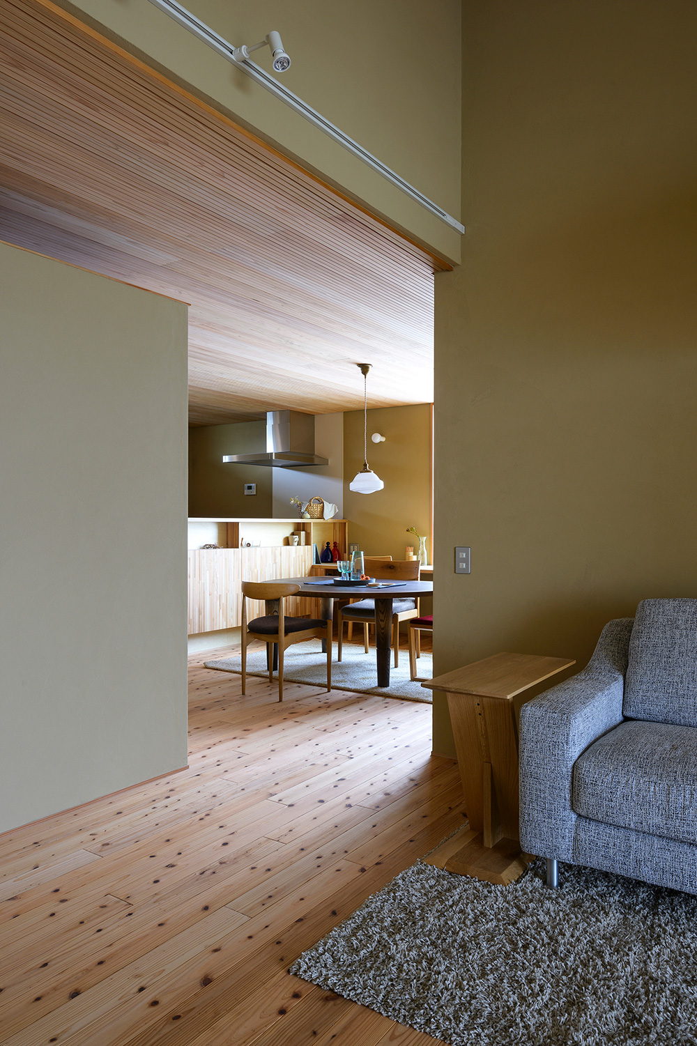 壁と配置で視線をずらしてゆるやかに分離。ほど良い距離感がポイント
