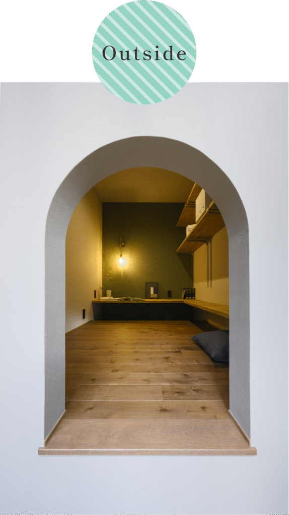 ヌックとはリビングの一角や階段下、窓際などに設けられる2〜3畳程度の「居心地の良いこぢんまりとした空間」のこと。壁や扉で完全に区切らず、床の段差などでゆるやかに仕切り、読書や休憩、仕事など多目的に使える秘密基地のような隠れ家スペースです。