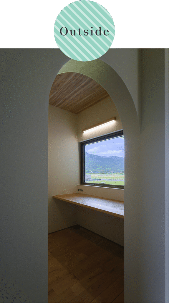 ▲造作のベンチを設けて腰掛けて本を読んだり、ぼーっとしたりするのに最適なスペース。おこもり感があって落ち着きます。