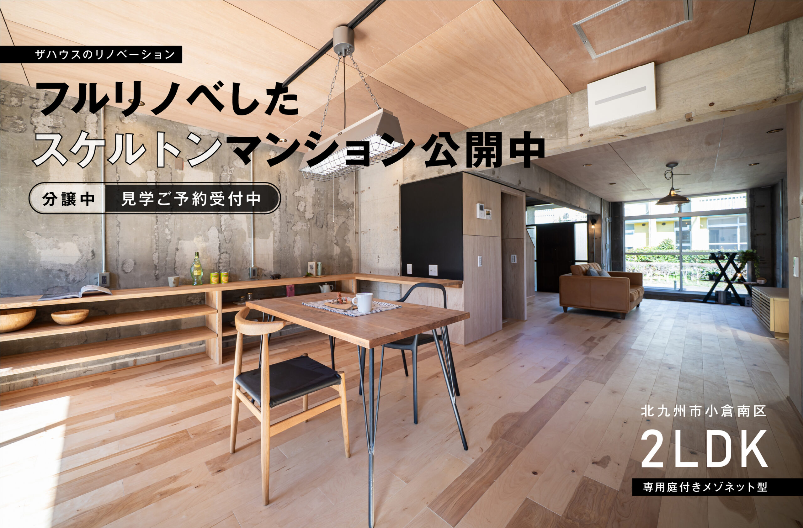 築42年のメゾネット型マンションをフルリノベ!プライベート空間以外は仕切りを外したオープンスタイルで開放感が広がります。お一人様からお二人様用に最適の2LDK!
