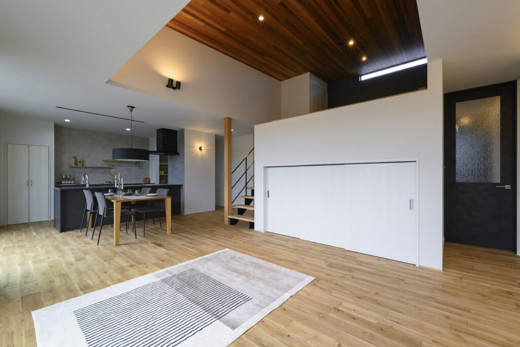 ▲高さを出して縦のつながりを生んだスキップフロアのロフトと折上天井