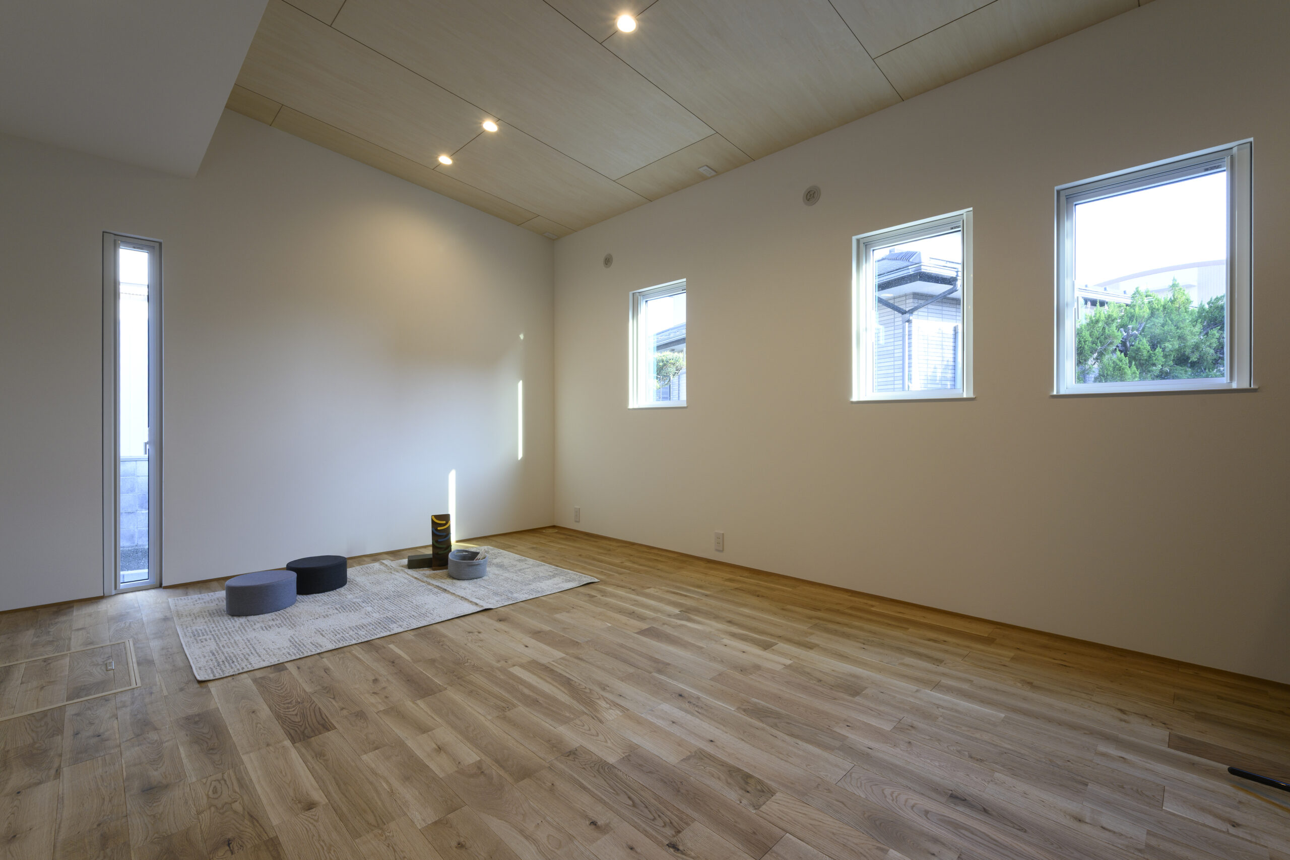 お子様と同居している間は個室にして、自立したあとはワンフロアで夫婦の時間を楽しむ空間にできます。