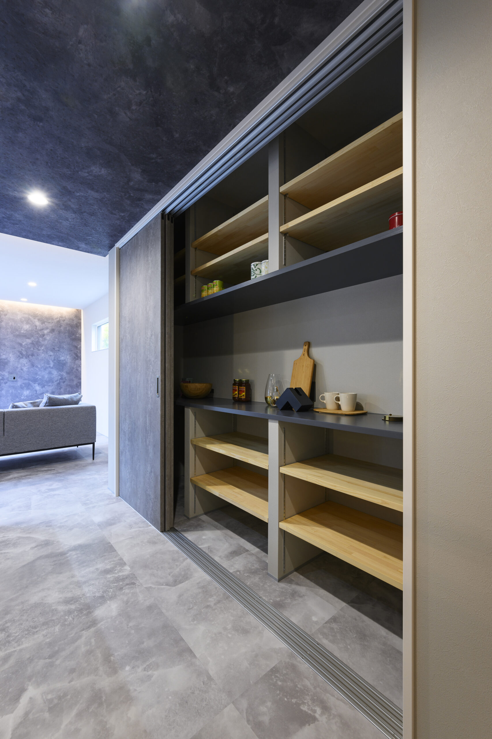 ダイニング横にパントリーとして使えるように豊富な収納クローゼットを施工しました。