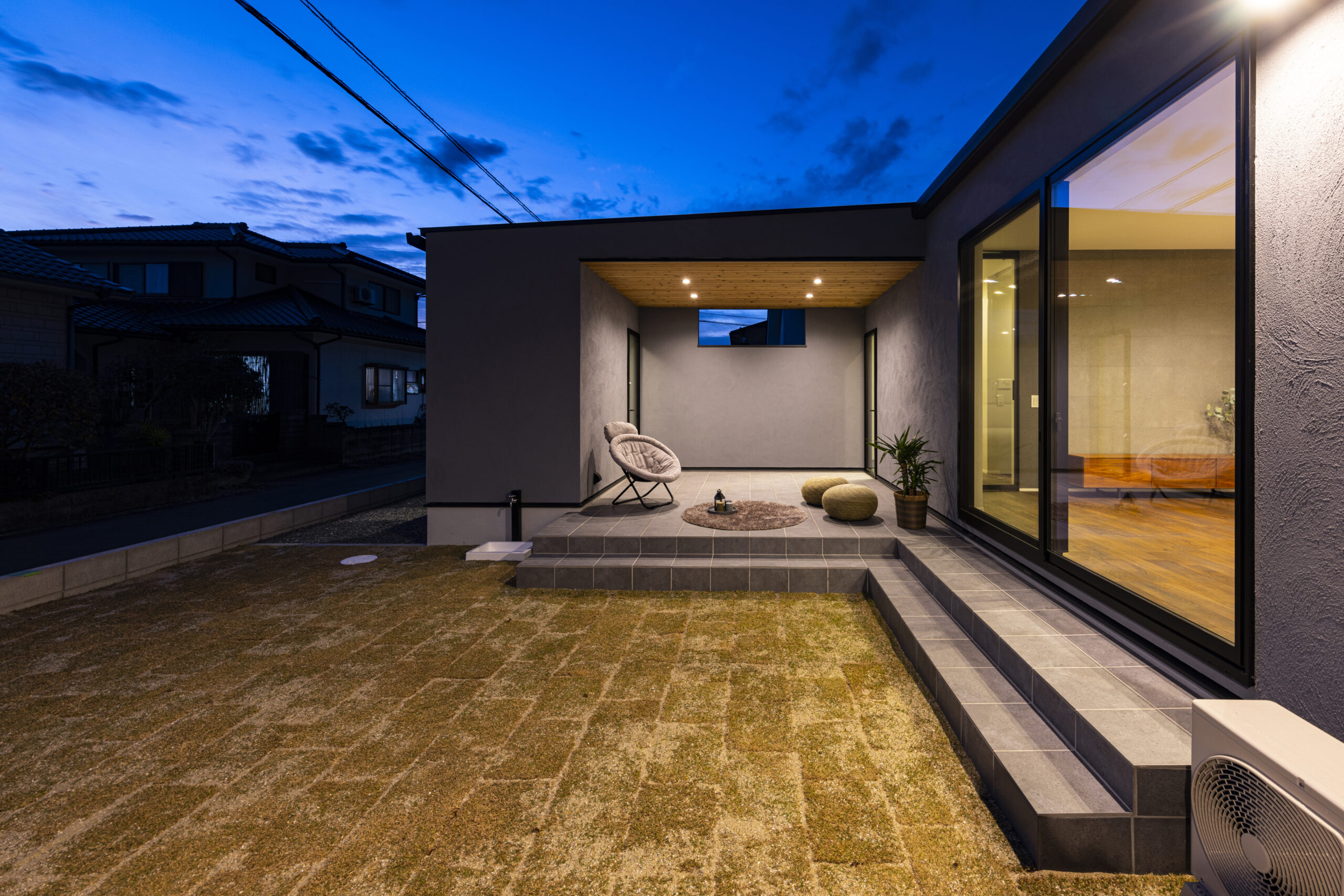 ナカとソトがシームレスにつながる開放的なアウトドアリビングは家のナカだけでは得られない自然との一体感を感じながら、心地よい時間を過ごせる空間。加えて、室内は表と裏の動線がスムーズに分かれ、収納も充実。家事や育児がしやすい間取りで、ナカとソトから暮らしの質を上げてくれる住まいです。