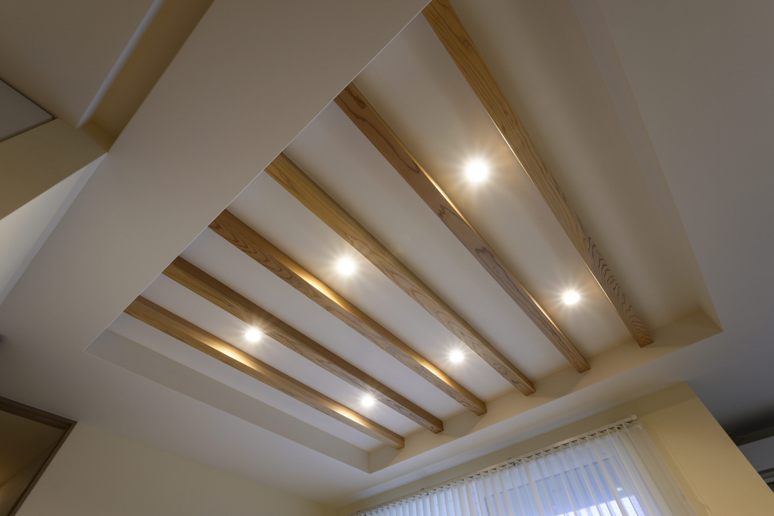 リズムと変化が生まれ、上質で洗練された雰囲気に。梁を使ってハンモックを吊るしたり、スポットライトをつけたり、とインテリアの幅も広がります。