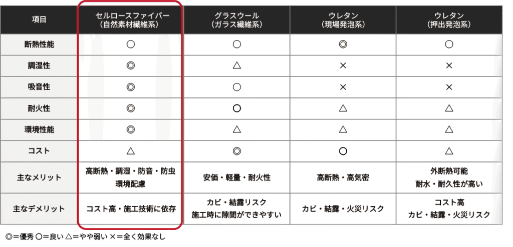 セルロースファイバーと他素材の違い