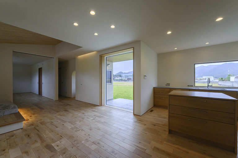 開放感とプライバシーを両立!内にひらく、“つ”の字型の平屋