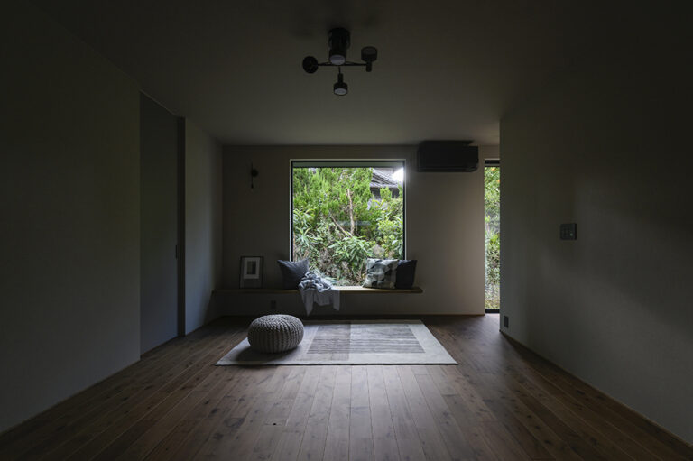 ヌックから眺める中庭の風景が夫婦の時間を贅沢に彩るホテルライクな平屋
