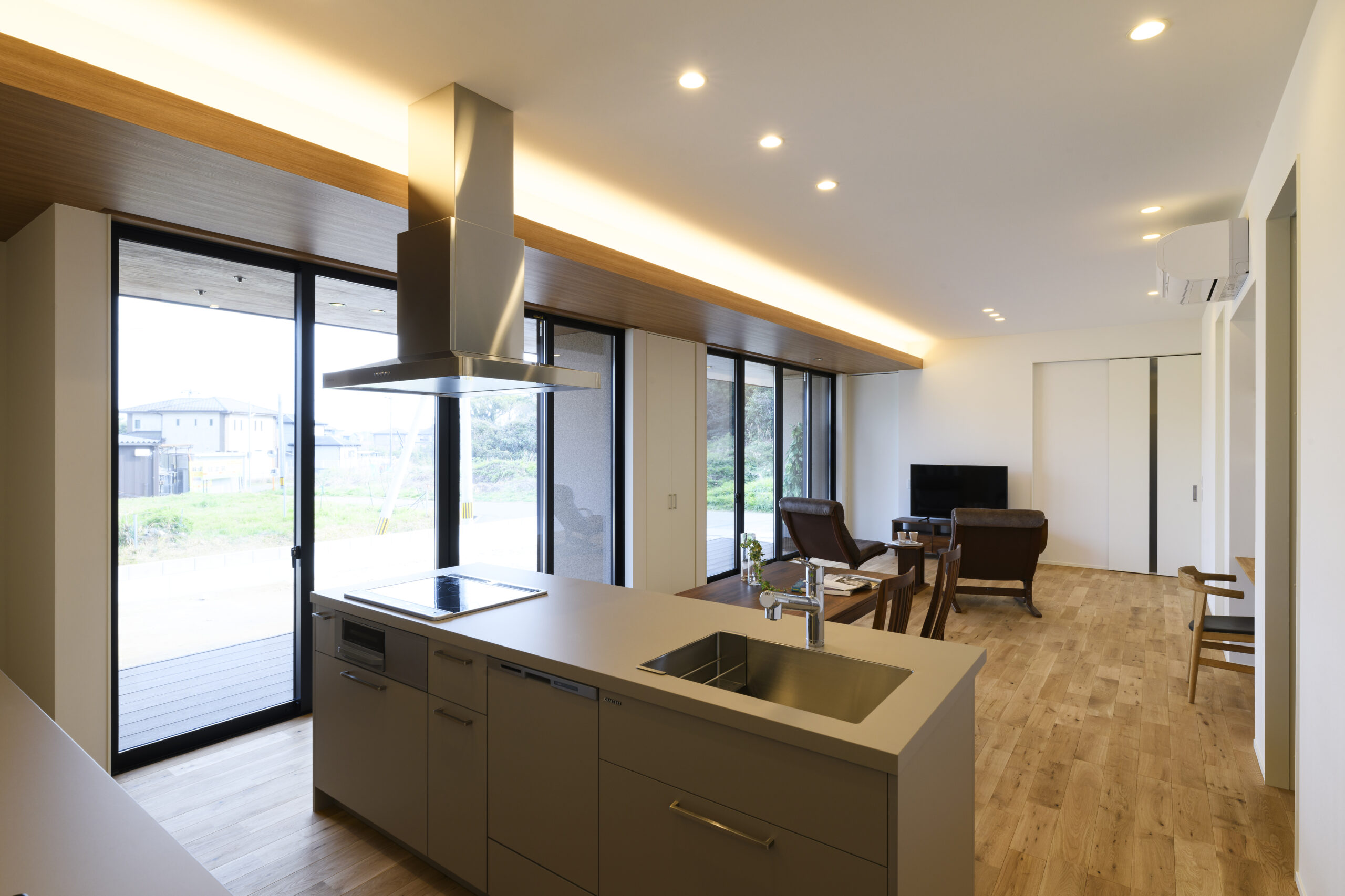 2400mmの天井高に300mmの高低差をつけた折り上げ天井がLDKに変化をつけて、さまざまな表情と拡がりを感じられる空間にしました。
