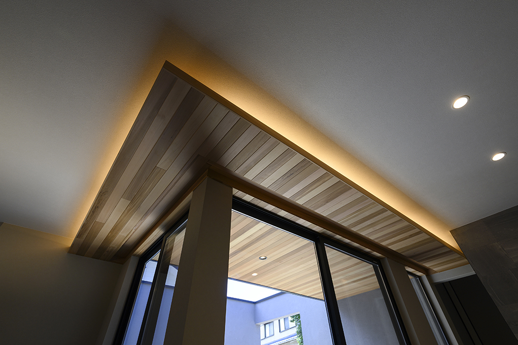 空間に奥行きと広がりを持たせるレッドシダーの軒天