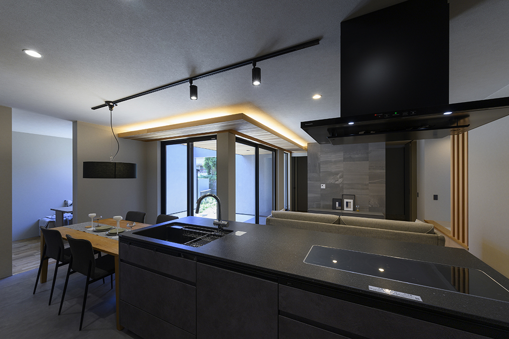 ヌックから眺める中庭の風景が夫婦の時間を贅沢に彩るホテルライクな平屋