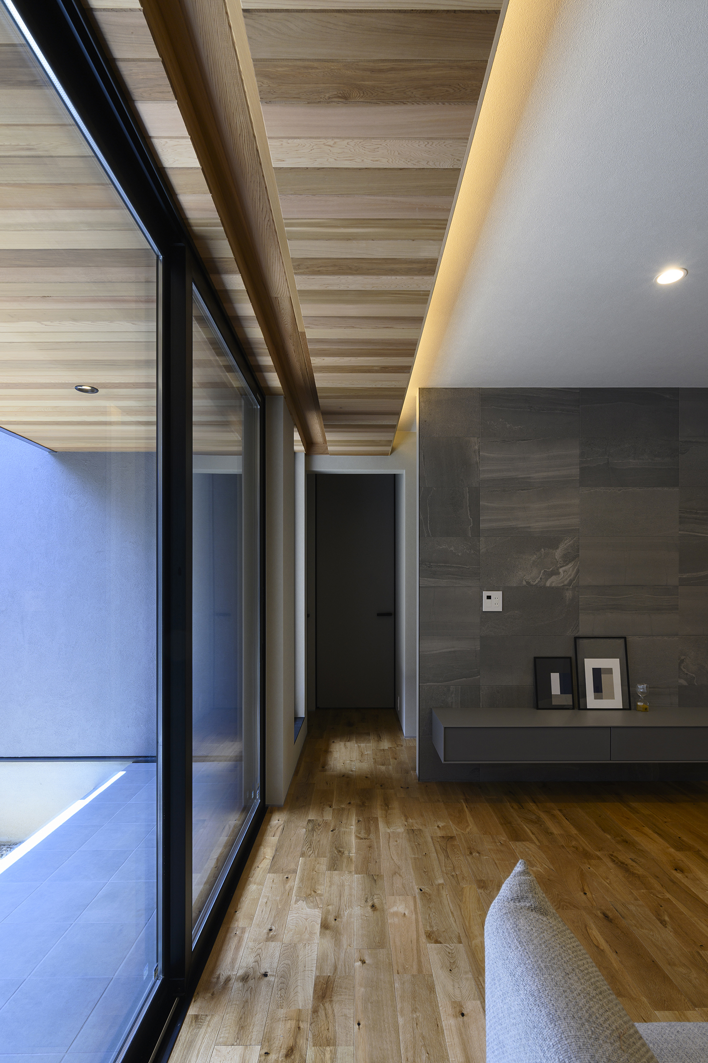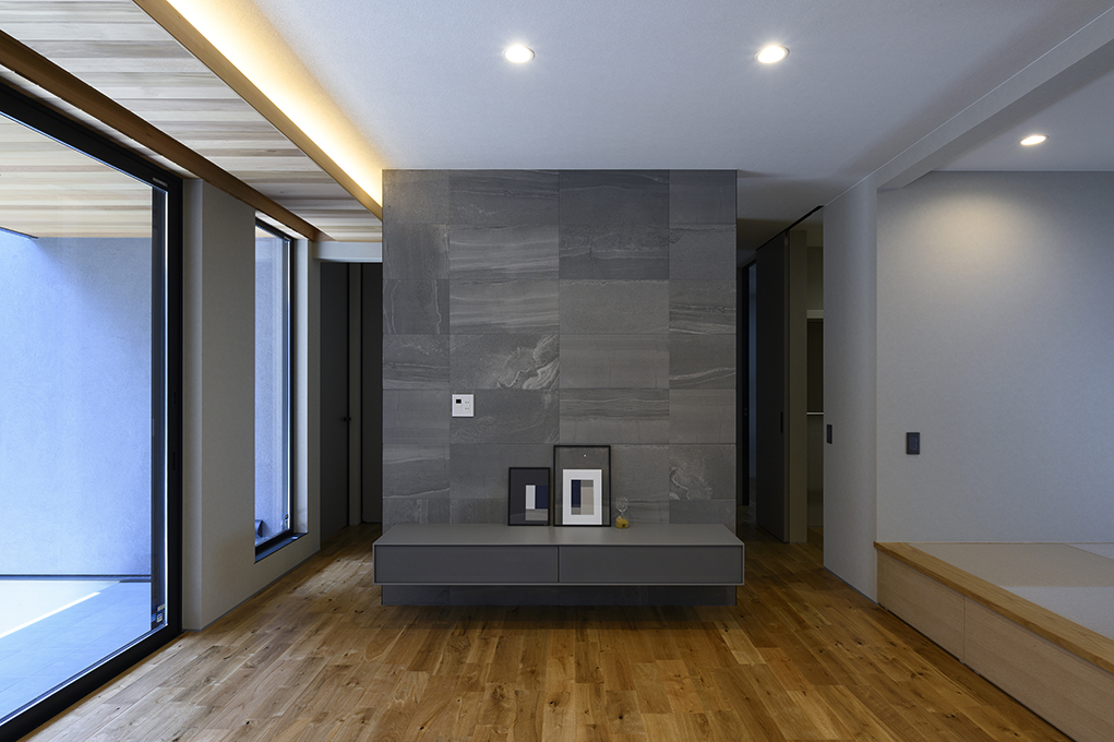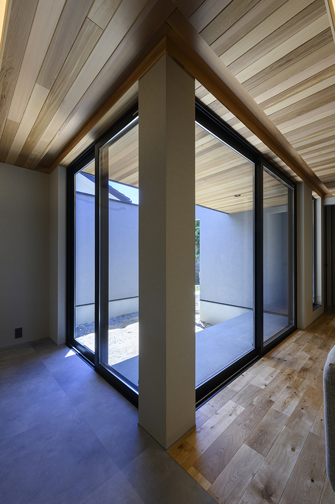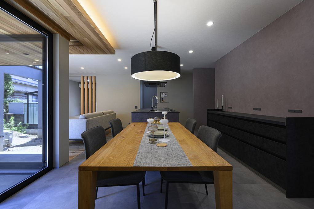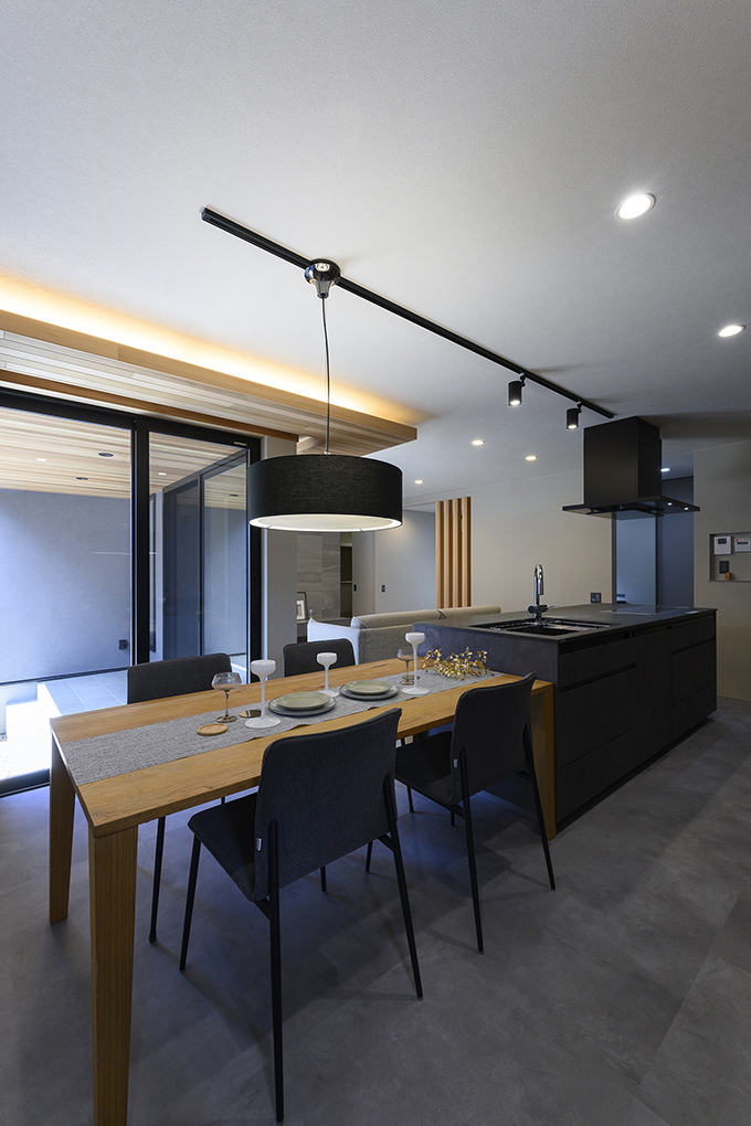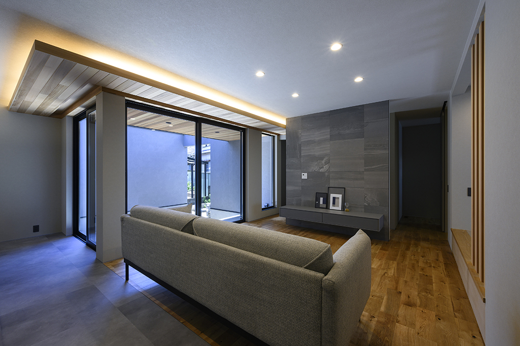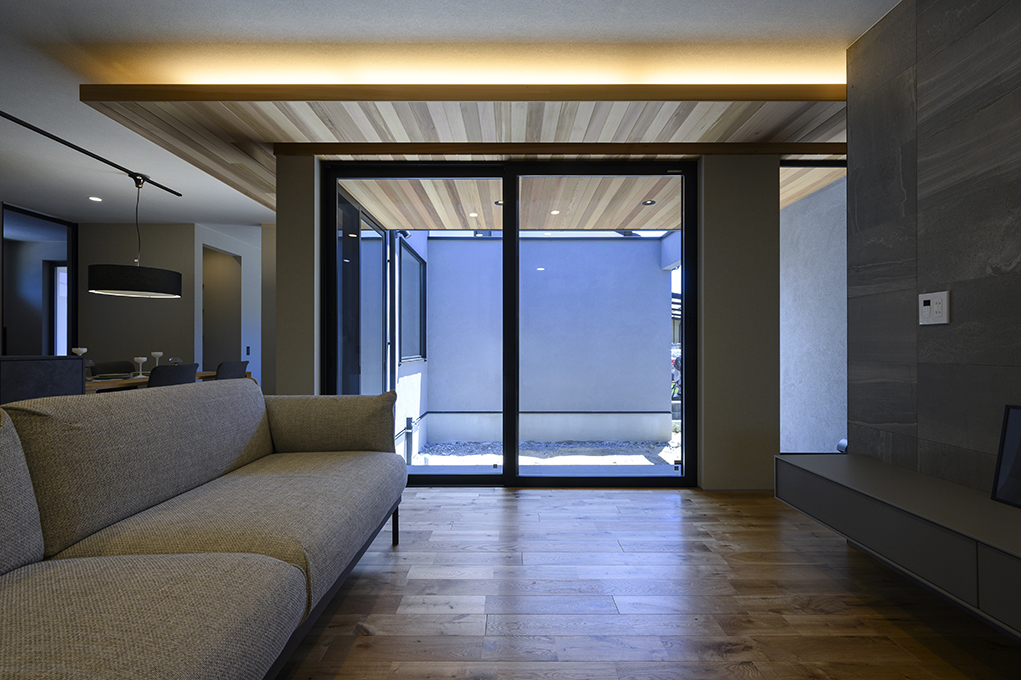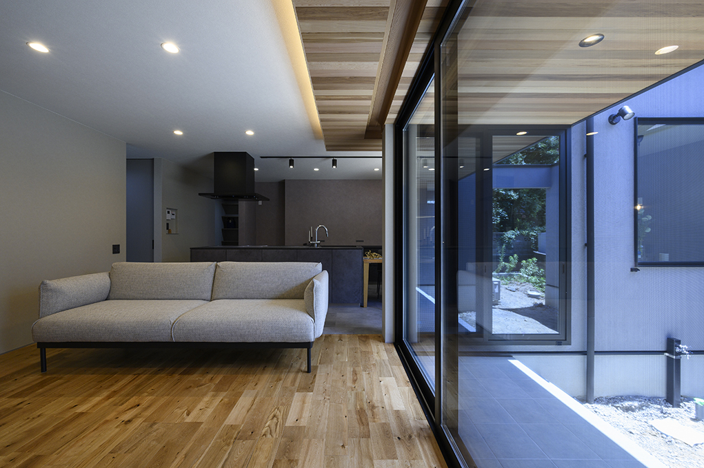 ヌックから眺める中庭の風景が夫婦の時間を贅沢に彩るホテルライクな平屋
