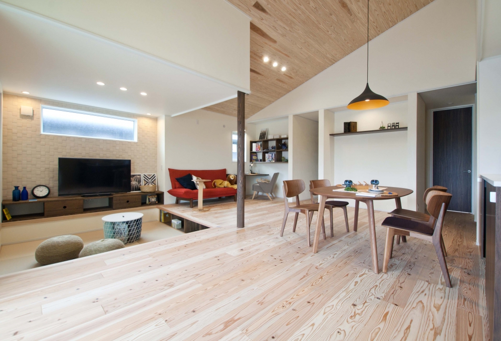 ご家族の趣味である読書を思う存分、楽しんでもらうために本棚を多く設置した平屋の家。