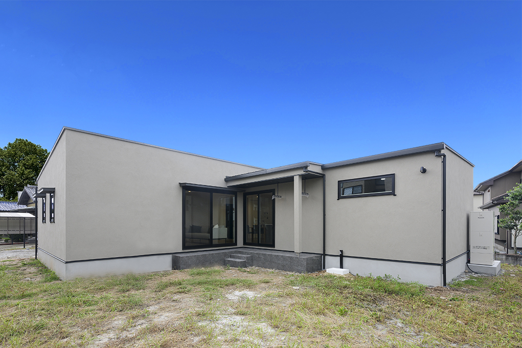 外観のアクセントとしてブラックの玄関扉や庇、サッシをセレクト。建物をギュッと引き締め、洗練されたスタイリッシュさを感じさせる佇まいです。