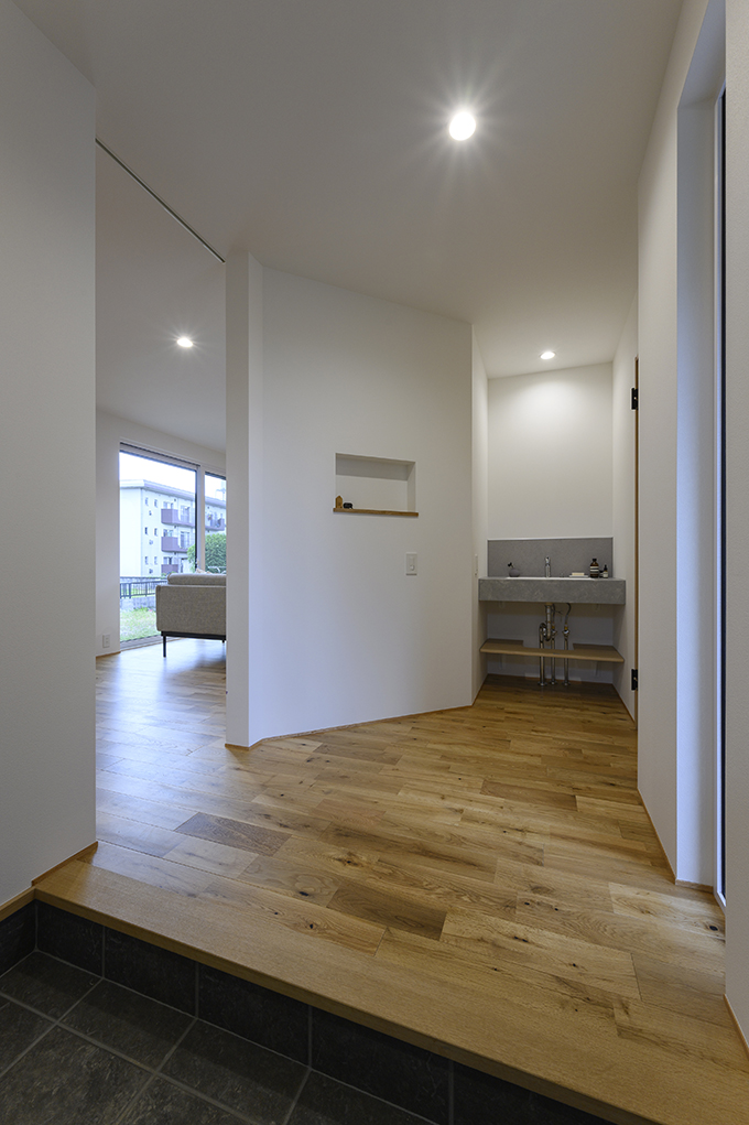 今や定番になりつつある玄関からの2WAY動線。家族用とお客様用に使い分けられるから来客に合わせて慌てて掃除する必要もありません。