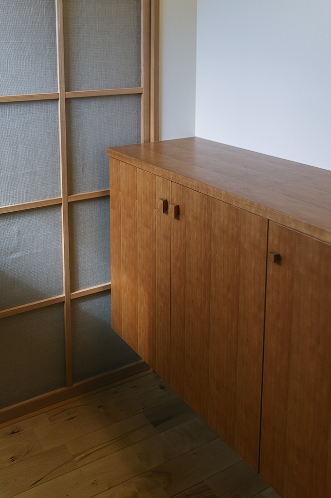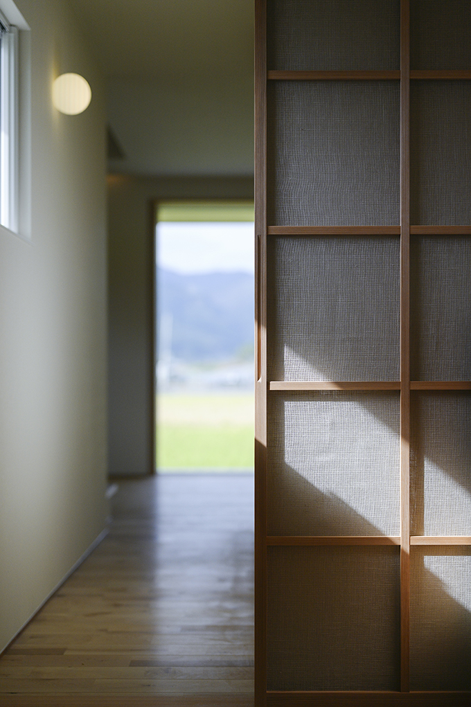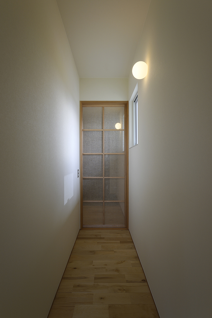 廊下からLDKにつながる建具には通気性が良く、吸水・吸湿性に優れている麻を採用。麻の繊維と繊維の間には隙間があり、特有の質感や透け感が和の雰囲気を演出します。
