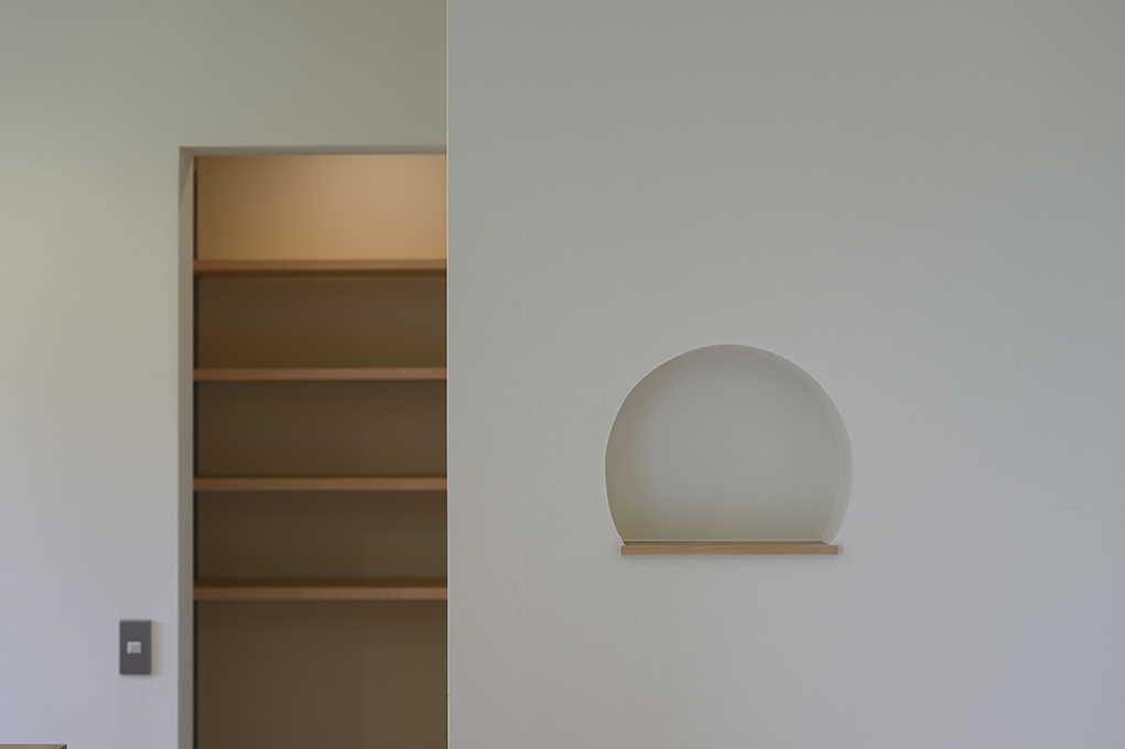 LDKからの眺望を最大限にいかすために設置した、まるで“透明な壁”のような大きな窓。視界を遮らないフレームインデザインで、四季折々の景色が開口部いっぱいに広がります。開けても、閉めても、外とつながる心地よさを体感できます。