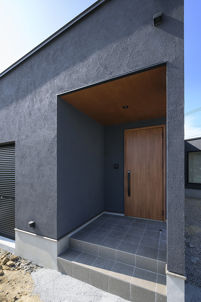勾配の違う屋根を組み合わせて、見る方向によって異なる雰囲気を楽しめるように施工しました。黒のカラーで落ち着いた佇まいにも目が惹かれます。
