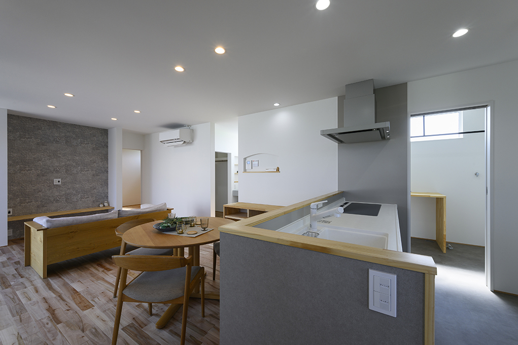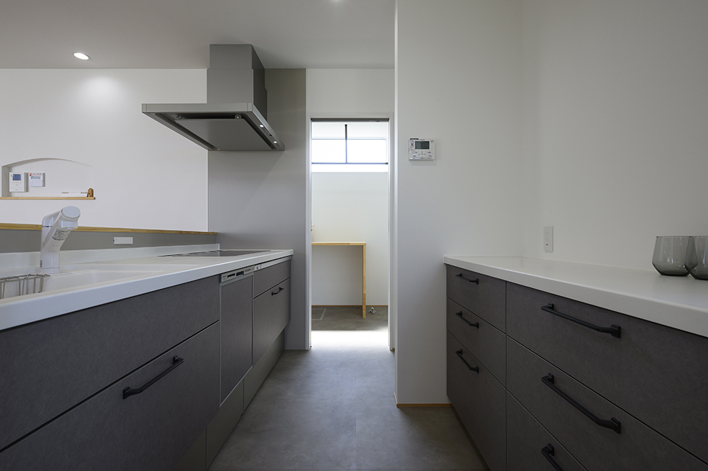キッチンの隣に設けた洗面脱衣室を通り抜けできるようにプランニング。